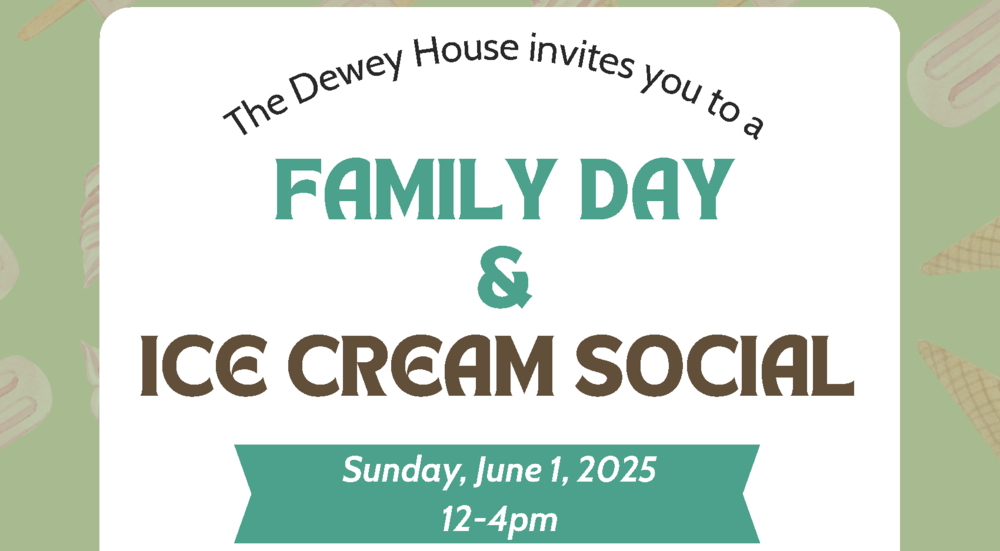 Please take a look at the picture below for information on Family Day & Ice Cream Social at The Dewey House on June 1 from 12-4pm.